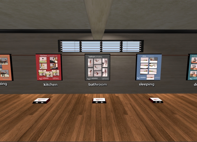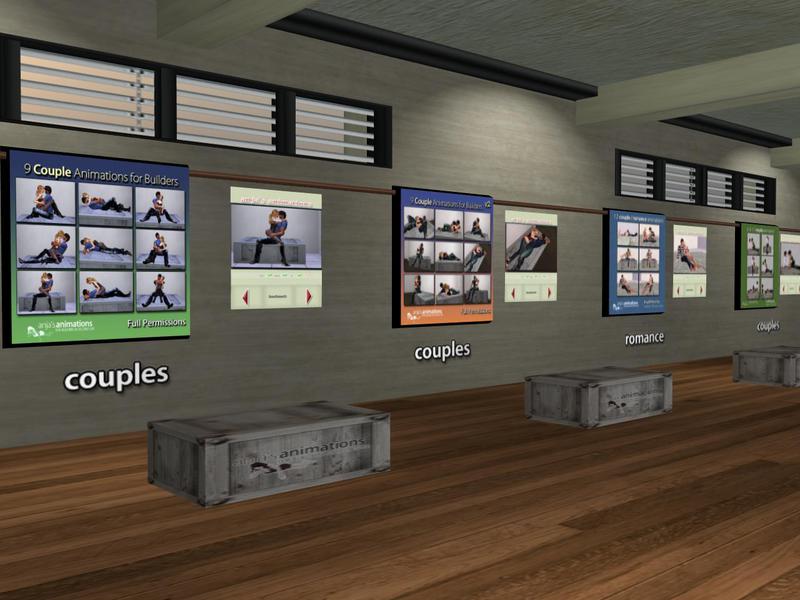 You can buy packs of full perm animations for share with your contacts or for be included in your creations. Animations are based in everyday tasks, like sitting, cooking, sleeping, taking a shower and others. They sell couple poses and animations for partner actions and romance, and animations and poses for ...
