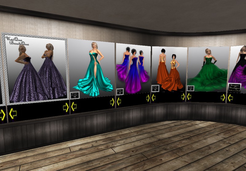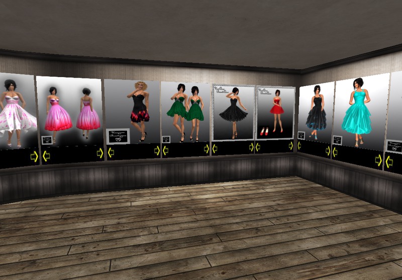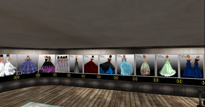 A womans Boutique, a beautiful shop easy to navigate around. The shop is on several layers with the landing point on the top floor. The top floor has the Ballgowns and Elegant Gowns for sale in secure Hippo vendors. The Hippo Vendors all accept Gift Vouchers, gift vouchers are sold at this store plus you can win them in the Mini Mania Boards which are on the floors below.