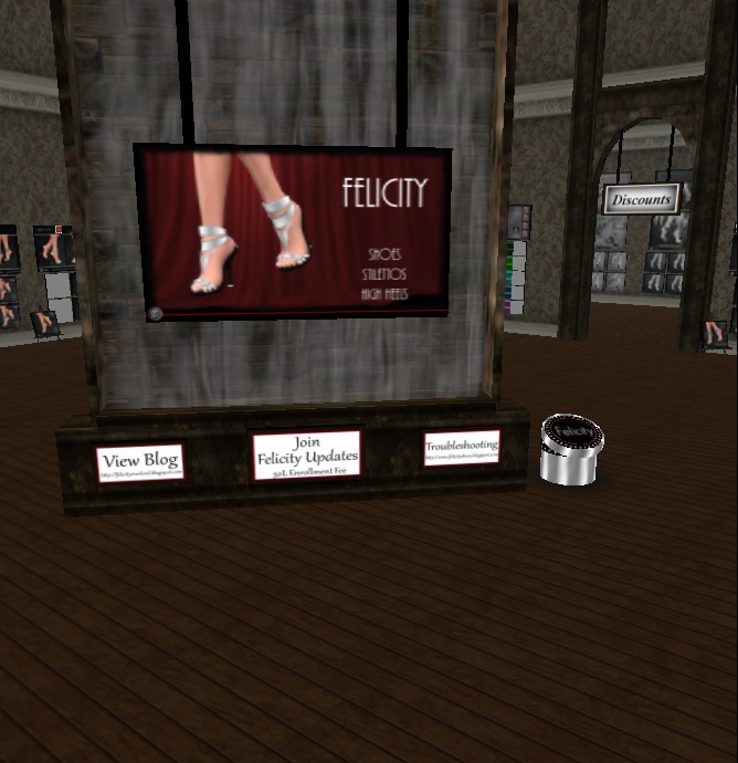 The business, 'Felicity - Shoes, Stilettos, and High Heels,' is made very nicely. There are many points to this business of why it deservers a wonderful review. First off, when you Teleport into the area, you get this message: [23:03] Felicity's Greeter: Mandie ******, thank you for stopping by. *Felicity* Shoes ...